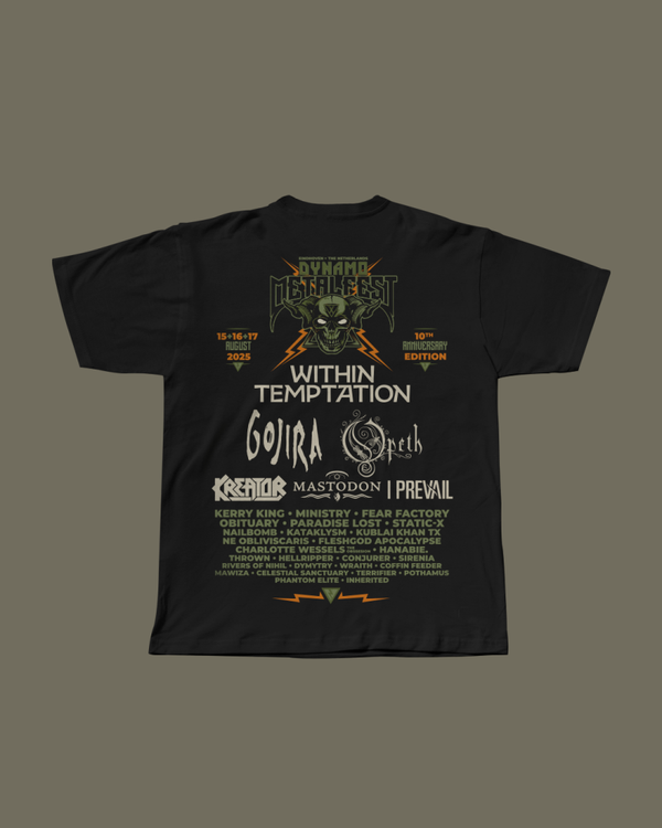 Het officiële Dynamo Metalfest 2025 t-shirt gedrukt op onze exclusieve merchandise lijn. Deze lijn is van extra hoge kwaliteit en voorzien van fijne details.